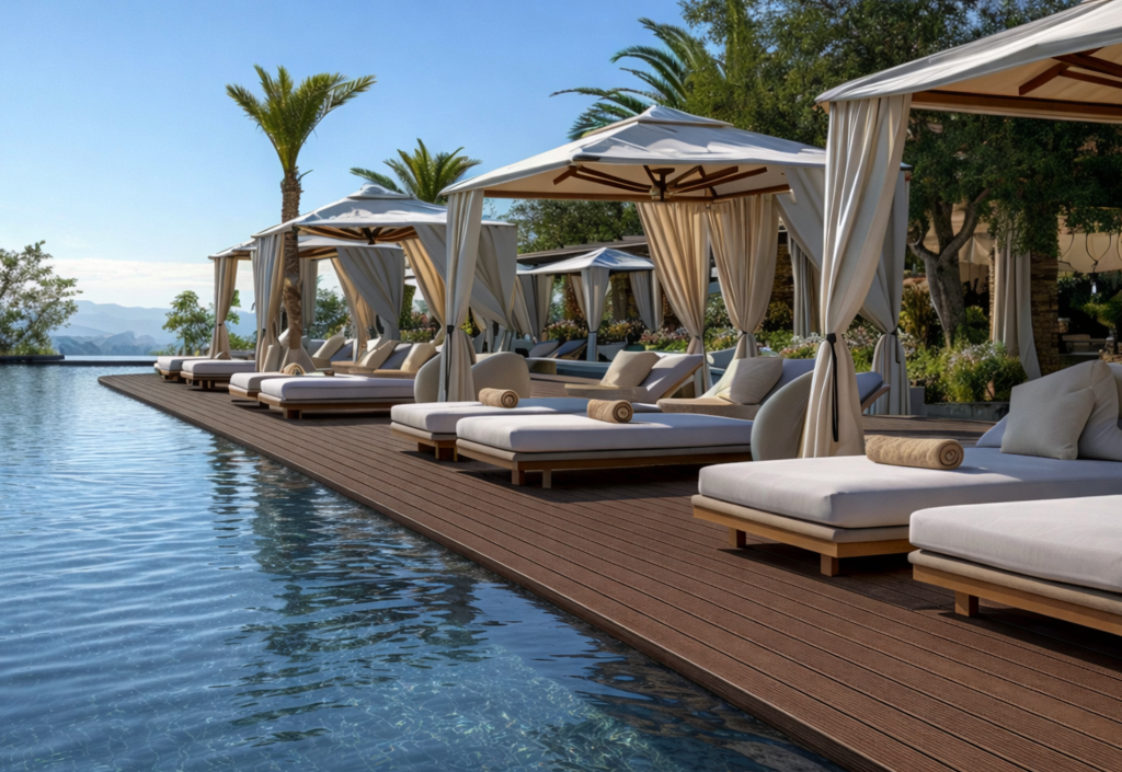 Nesse cenário, uma mudança estrutural está ocorrendo nas áreas externas dos principais resorts e hotéis boutique do país: a substituição definitiva da madeira natural pela madeira plástica de alta performance.